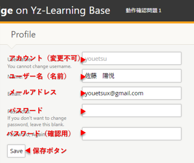 • ユーザー名(Name)には,自分の名前を漢字で入力