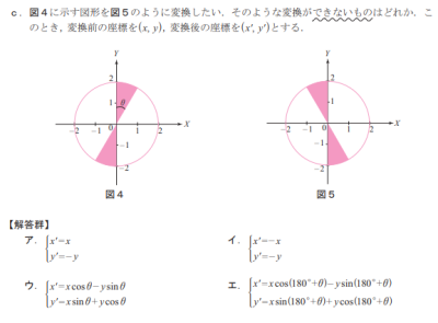 問題:図4のピンクの形を、図5の形に変換したい。 そのとき、変換できないもの(間違った式)を選びなさい。