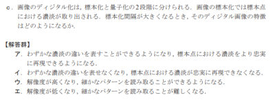 エ.解像度が低くなり,細かなパターンを読み取ることが難しくなる。