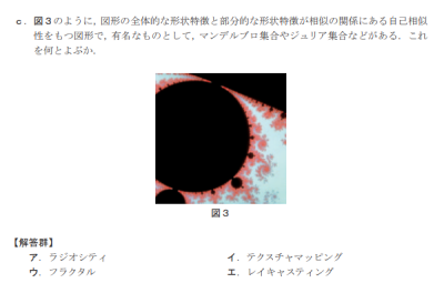 → 自己相似性を持つ図形。マンデルブロ集合やジュリア集合の代表格 ✅ 正解!