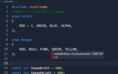 これで、enumにスコープを付けることができて、Colors::REDと、Renger::REDは全く別のスコープに存在するので区別されるようになります。